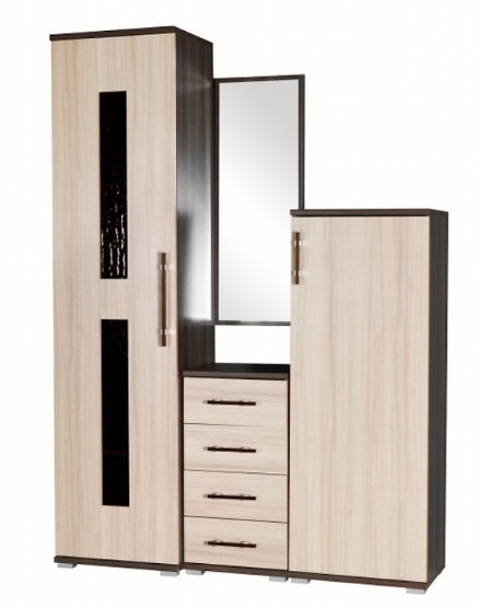 Garderoba składa się z czterech elementów: szafy i szafki na buty,