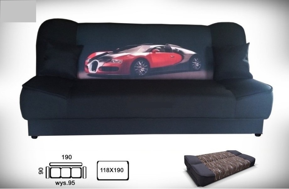 Kanapa rozkładana z pojemnikiem na pośćiel.