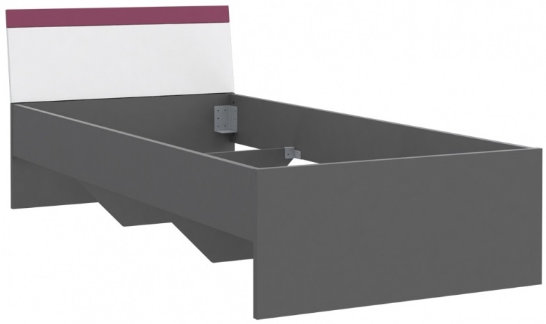 Łóżko jednoosobowe z serii młodzieżowych mebli LIBELLE. Łóżko w kolorze szarego matu z białym frontem oparcia i fioletowymi wstawkami z pewnością ożywi pokój. Stanowić będzie idealne uzupełnienie aranżacji pokoju pozostałymi meblami tej kolekcji. W celu zapewnienia większej funkcjonalności mebla możliwe jest dokupienia szuflady pod łóżko LIBELLE.