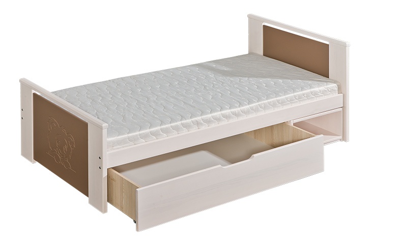 Łóżko posiada wysuwany stoliczek