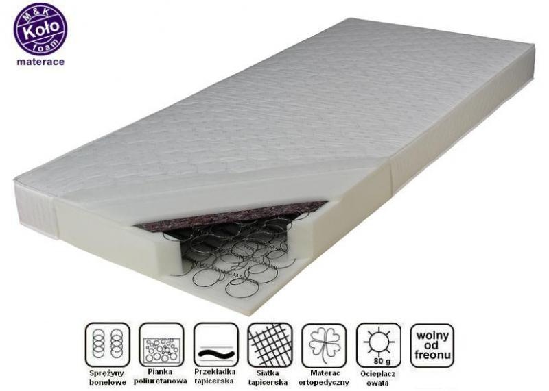 Wkład materaca stanowią sprężyny bonnelowe z wysokogatunkowego drutu o średnicy 2,2 mm, posiadających certyfikat ISO 9001. W wersji jednostronnej obłożony jest po stronie pikowanej przekładką tapicerską i pianką poliuretanową T25-20 mm o zwiększonej sprężystości, po nie pikowanej warstwą siatki tapicerskiej i pianką poliuretanową T25-20 mm o zwiększonej sprężystości. W wersji dwustronnej przekładką tapicerską i pianką poliuretanową T25-20 mm o zwiększonej sprężystości.
