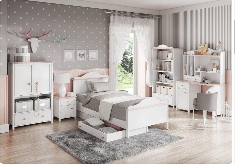 Białe meble dziecięce z kolekcji LUNA - to piękne meble dziecięce, w których oprócz pojemnej szafy i wygodnego łóżka znajdziecie funkcjonalną komodę, regał oraz biurko z nadstawką. Uzupełnieniem będzie stylowa toaletka z lustrem. Meble LUNA to romantyczna i subtelna kolekcja dla małych dziewczynek i nastolatek.