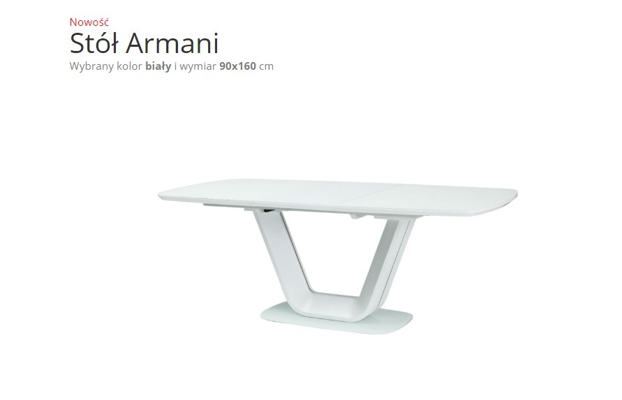 Stół rozkładany, blat: MDF + szkło, stelaż: MDF + stal szczotkowana, kolor: biały mat.