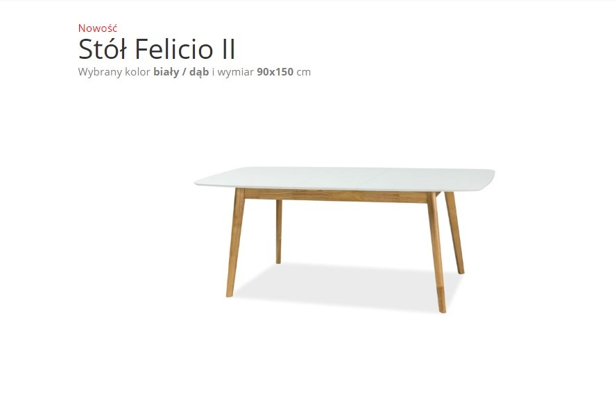 Stół rozkładany, blat: MDF, stelaż: drewno, kolor: biały / dąb