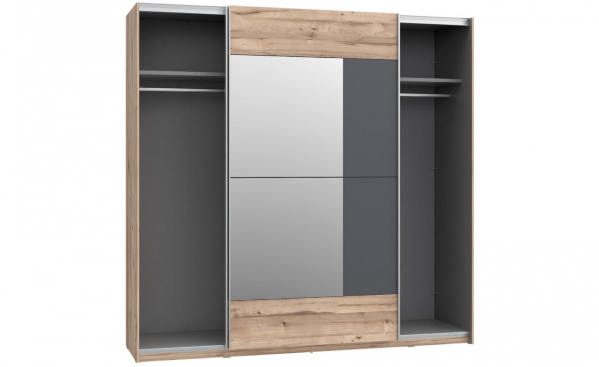 Przestronna szafa z drzwiami przesuwnymi z kolekcji mebli CLAIR z pewnością pomieści obszerną garderobę.